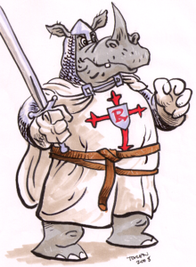 The creature that would become Rhinosferatu was born centuries ago. Known as Nicolaas in the 12th century, he was a knight in the crusades against the Ottomanatee Empire. His squad of soldiers found themselves in an old village overlooked by a heathen temple. Nicolaas and his crocodile ally were the first to explore the temple on the hill, not realizing that it contained an ancient vampire bat. The bat quickly dispatched Nicolaas’ ally and chased the rhino deeper into the temple, the encounter culminating in a fight with sword and fang. A tremendous fall left the vampire bat impaled on a huge wooden fragment, but the bat’s legacy was to live on in Nicolaas, who had been bitten in the melee. Nicolaas realized he could not leave the temple during the day, and as the rest of his company investigated the disappearance of their fellows in the temple they were in turn dispatched by Rhinosferatu. As night fell he abandoned the village and returned to the East, preying on helpless animals along the way to sate his dark hunger.